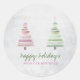 Pink Green Pine Tree Snow Holiday Classic Round Sticker