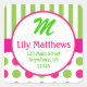 Pink & Green Stripes Dots Monogram Address Sticker
