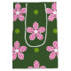 PINK GREEN WHITE DAISY FLOWERS MEDIUM GIFT BAG