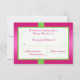 This hot pink, lime green, and white floral RSVP card has a PRINTED ON ribbon and a PRINTED gemstone and diamond jewels brooch on it that matches the wedding invitation shown below. The type of paper and all text is customizable. If you require any other matching items, or would like this in a different colour combination, please email your request to niteowlstudio@gmail.com.
