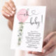 Oh Baby! Impress your guests with this adorable pink greenery watercolor balloon baby shower invite. The botanical eucalyptus succulents cascade down with glimmers of gold leaves. Please note: This design features high quality graphics made to look like sparkly gold- it is not real foil gold.
