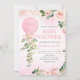 Pink Greenery Floral Balloon Baby Shower Invitation