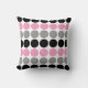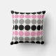 Pink, Grey, Black Retro Circles Pattern Throw Pillow
