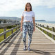 Love the leggings. Wore them to my pump class. Didn’t have to pull up once. Very comfortable. I’m 5’3 and weight about 118. I ordered a size small. Fit perfect except the ankles are a bit loose. I would suggest changing the background on these from white to a darker color as they are a bit see through. The waist is above my belly button. Very flattering. My design turned out beautiful.