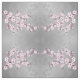 Pretty pink cherry blossom pattern on a shimmering grey background. The floral Sakura branches are arranged in geometric forms.