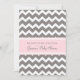 Personalized baby shower invitations in elegant and modern light baby pink, dark charcoal grey and white fun chevron zigzags pattern. Customizable with your text, contact us to request a colour change.