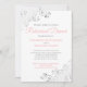 This beautiful wedding Rehearsal Dinner invitation features a simple yet elegant design of pink and grey text on a white background with silver faux foil curls or filigree in the corners. Welcome members of your wedding party and special guests to share in a Rehearsal Dinner with these gorgeous invitations. This invite is fully customizable, so you can change the text to suit your situation and needs. Designed to coordinate with our Pink & Grey Elegant Wedding Suite
