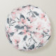 Pink & Grey Floral Watercolor Pattern Monogram Round Pillow