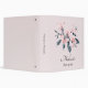 A binder with a pretty watercolor illustration of pink flowers with grey leaves on a single stem. A modern elegant botanical design.
