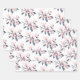 Pink & Grey Flowers Classy Watercolor Pattern Wrapping Paper Sheet