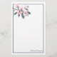 Stationery paper with a pretty watercolor illustration of pink flowers with grey leaves on a single stem. A modern elegant botanical design.