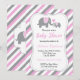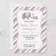 Pink & Grey Stripes Baby Elephant | Baby Shower Invitation