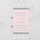 Wedding save the date announcement card with elegant light blush pink, grey and white floral damask pattern. Customizable with your wedding details, available in a wide range of matching wedding products. Contact us to request a colour change or a custom product.