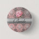 Pink Grunge Damask Bride Button