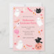 Invite guests to your halloween costume party with this cute invitation. The design features pumpkins, black cat, cute ghost, and twinkly sparkles, and other signs of the season all in a friendly shades of pink. Personalize with your own names & party details!