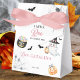 Send guests home with a spook-tacular treat! This Halloween favour box with pink accents, a playful ghost, and festive pumpkins is the perfect party detail. Inspired by the joy of fall celebrations, it adds sweetness and charm to your baby shower while keeping goodies stylishly wrapped.
