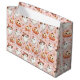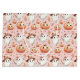 Smiling pumpkins. ghosts with bows, and ghosts with hats fly across the pink background for a unique gift bag perfect for a Halloween baby shower, a Halloween birthday, or just because gift.