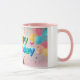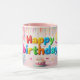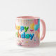 This is a pretty pink girly kind of coffee mug. It's feminine from the pastel color decorations to the picture of the cake. After getting this mug as a gift, you'll diffidently want to celebrate your special day!