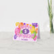 This fun and colourful birthday card for girls features the message, "Happy Birthday" spelled out in realistic, whimsically arranged pink frosted cutout cookies on the front of the card surrounded by multicolor balloons and bunting flags - inside message and child's age and name can be personalized - two balloon-shaped cutout cookies adorn the inside of the card - background is a pattern of small white polka dots on pale pink - by katz_d_zynes