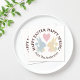 This design features silhouettes of bunnies (blue & yellow) and a pink heart. The simple animal design with personalized text makes cute modern and unique paper napkins.