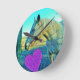 Pink Heart and Yellow Horse Round Clock