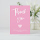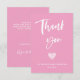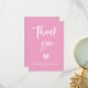 Design features pink heart and blue THANK YOU in the middle of the card . Easy customization process start with clicking button 'PERSONALIZE' that gives you the thank you card automatically for your purpose.