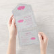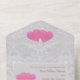 Invite guests to your upcoming wedding with a Pink Heart Balloons All in One Wedding Invite. Invite design features a pair of heart balloons against a delicate lace damask background. Personalize with the groom and bride's names along with the wedding date and location. Additional wedding stationery available with this design as well.