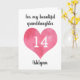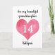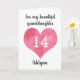 A personalized heart 14th birthday card for granddaughter that features a watercolor heart. You can personalize the watercolor heart with the age you need and add her name underneath the heart. The inside card message reads a heartfelt birthday message, which also be easily personalized if wanted.