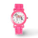 Original pink Valentine heart horse by equine artist Carolyn McFann of Two Purring Cats Studio printed on a customizable girls watch.