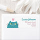Cute, girly, cartoon, kawaii cat with pastel pink heart return address label.
