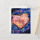 Pink Heart on Blue Mixed Media Art Postcard