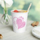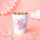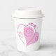 Custom paper cups with pink hearts. Change the background colour to fit your liking. Perfect for valentine's day parties, anniversaries, weddings, bridal showers,