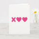 This card shows a plain white background with three hot pink symbols lined up across the center. First there’s a rounded “X” that reads like a kiss, followed by two matching heart shapes. The shapes are smooth and simple, with sharp edges and no extra patterns, so your eyes go right to the message. There isn’t any other scene or character, which makes the design feel direct and easy to understand. There’s no written phrase on the front—just the “X” and the hearts acting like the message on their own. It feels meaningful because it says “I care about you” in a straightforward way, whether you’re giving it to a partner or a close friend 🥰. The hot pink color adds warmth and a little excitement without needing anything else ❤️. Hope it helps you share your Valentine’s Day feelings in a kind, honest way.