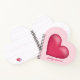 Destei's pink heart shape illustration on a light pink background colour. There is also a personalizable text area for a name. On the back there is a pattern of pink hearts.