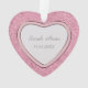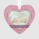 Cette ornementation de vacances en saké présente votre propre photo de bébé encadrée dans un joli cadre de coeur rose et bordée d'argent. Le cadre du coeur est bordé d'une motif rose rose tourbée. Une bannière violette de prune plus foncée tient votre texte customisé; faites-le dire ce que vous voulez! L'arrière de l'ornement a la même bordure motif tourbée rose et le cadre en forme de coeur avec du texte supplémentaire sur la prune à l'intérieur. Cela fait un beau cadeau de conservation pour les nouveaux parents.