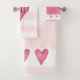 Pink Heart Typography Baby Love with Name Bath Towel Set