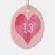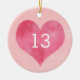 Pink Heart Watercolor 13th Birthday Ceramic Ornament