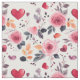 A fresh modern and romantic design of pink roses and hearts with floral leaves. a lovely fabric to celebrate love and valentine's day.