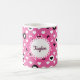 Rhoadie's Kitchen is the premier place for unique custom coffee mugs. Your loved one will feel the love with this pink hearts coffee mug. Showcasing a pink background with pink and black hearts, this mug can be personalized to your suiting. Place your order today.