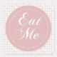 Pink Hearts 'Eat Me' Candy Buffet Sticker.Great for Candy buffets or cupcake tables at weddings, birthday parties, Baby showers, Communion, Confirmations and lots more! Design features a soft pinks, blues and beige hearts print on a white background. A large Circle in complimentary pink is printed on top with an inner white dotted border, with the words 'Eat me' is swirly font. Attach directly to candy buffet jars or bags. Alternatively these can be attached to card-stock and coffee stirrers and inserted in to cupcakes!