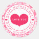 NewParkLane - Mother's Day Stickers, with a pattern of little hearts in different shades and sizes pink hearts.The text is wrapped around a big hot pink heart in the middle.