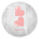 Add an elegant touch to cabinetry or furniture with a Pink Hearts Personalized Ceramic Pull. Pull design features a a pair of hearts, a soft white leafy vine against a light grey grunge background with an area to personalize with your name. Additional gift items available with this design as well as a variety of colours.
