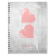 Create a unique and one of a kind journal with a Pink Hearts Personalized Spiral Photo Notebook. Notebook design features a a pair of hearts, a soft white leafy vine against a light grey grunge background with an area to personalize with your name. Additional gift items available with this design as well as a variety of colours.