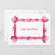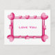 Les mots "Love You" sont dans un cadre rose entouré de coeurs roses brillants sur un arrière - plan blanc.