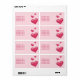 Destei's pink hearts in different sizes on a light pink background colour. There is also a personalizable text area.