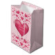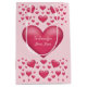 Destei's pink hearts in different sizes on a light pink background colour. There is also a personalizable text area on the big heart in the middle.