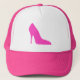 Simple shape of pink high heeled shoe on white background. Add words to personalize if you'd like.