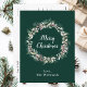 This fun and festive watercolor Christmas postcard can be personalized with a name or title. It features a watercolor Christmas wreath with pink holly and berries on a dark green background. The text combines handwritten script and modern serif fonts for an elegant and sophisticated look.