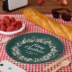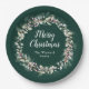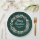 This fun and festive plate features a wreath with pink holly and berries on a dark green background. The text combines handwritten script and serif fonts for an elegant and sophisticated look. This is perfect for holiday parties, brunches, dinner parties, open house and more.