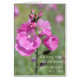 A stunning photograph of a bright pink hollyhock in full bloom is the feature on the front of this all occasion greeting card. It also has the inspiring words from Psalm 150:6, which says "Let every thing that has breath praise the Lord." The inside of the card is left blank for your own message.
